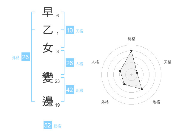 早乙女 變邊さんの総格は52画の4点