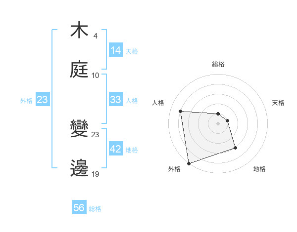 木庭 變邊さんの総格は56画の1点!