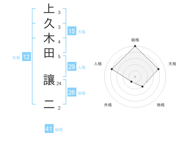 上久木田 讓二さんを姓名の画数から五運を鑑定