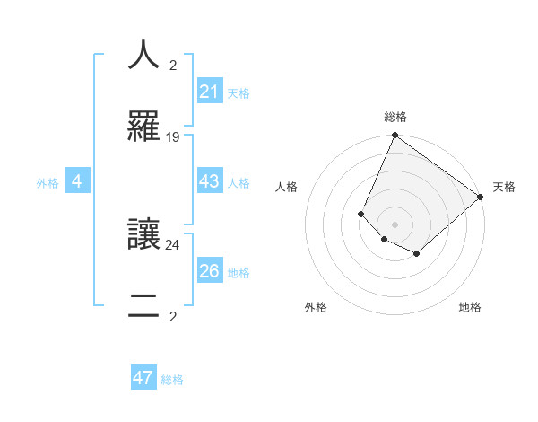 人羅 讓二さんの総格は47画の5点!