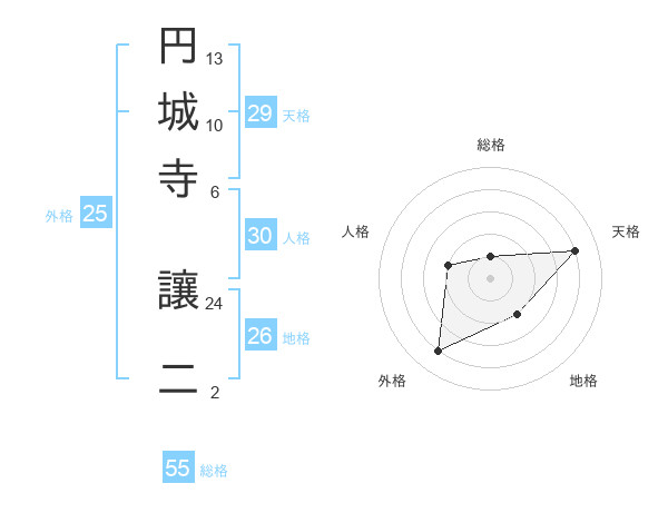 円城寺 讓二さんを姓名の画数から五運を鑑定