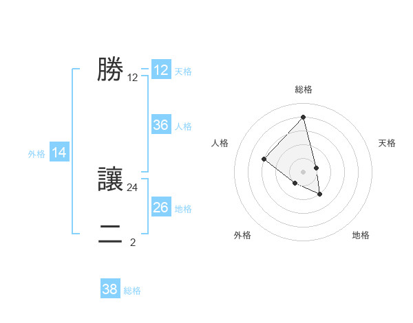勝 讓二さんの天格は12画の1点!