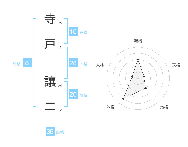 寺戸 讓二さんの天格は10画の1点!