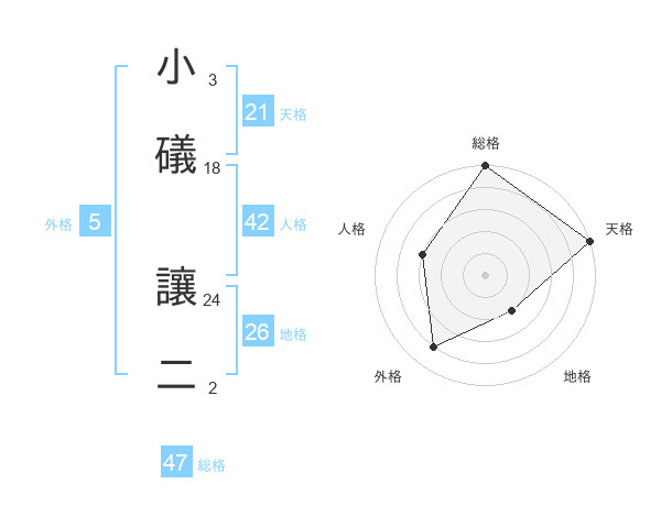 小礒 讓二さんを姓名の画数から五運を鑑定