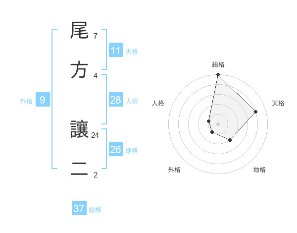 尾方 讓二さんを姓名の画数から五運を鑑定