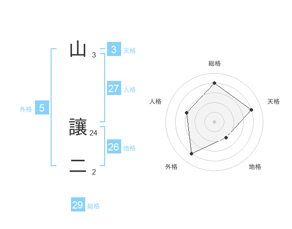 山 讓二さんの総格は29画の4点!
