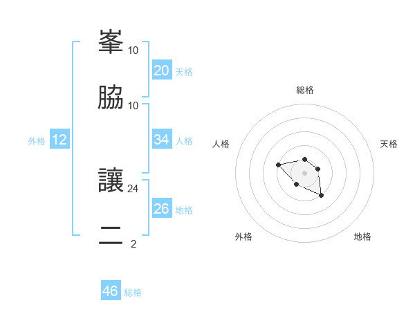 峯脇 讓二さんの総格は46画の1点!