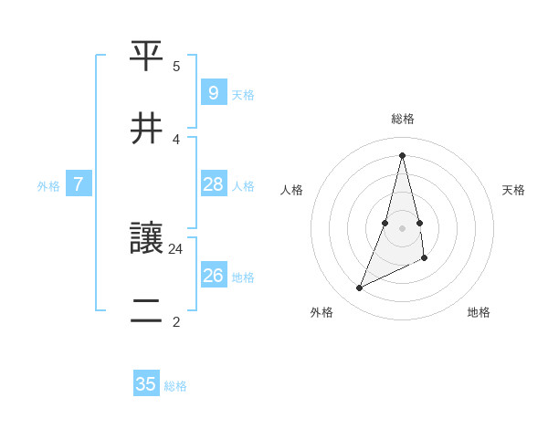 平井 讓二さんの総格は35画の4点!