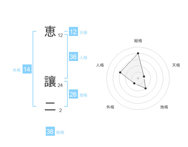 恵 讓二さんの総格は38画の4点!