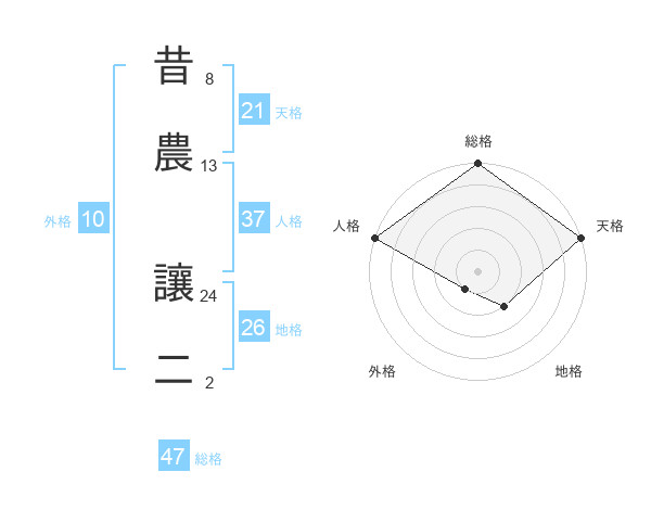 昔農 讓二さんを姓名の画数から五運を鑑定