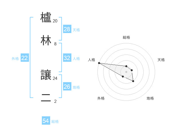 櫨林 讓二さんの外格は22画の1点!