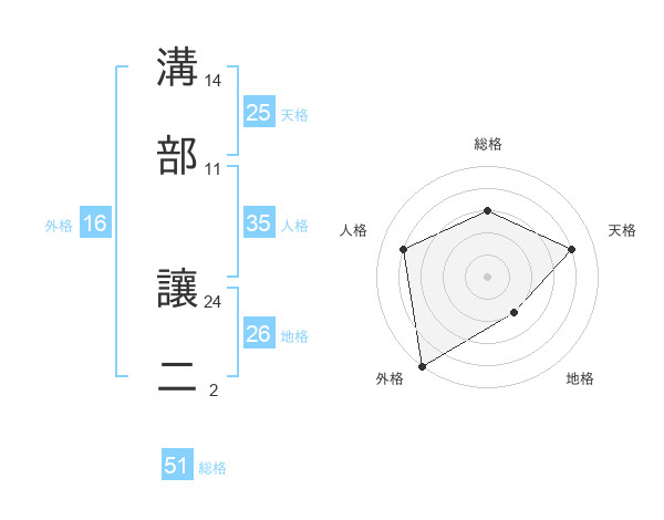 溝部 讓二さんを姓名の画数から五運を鑑定