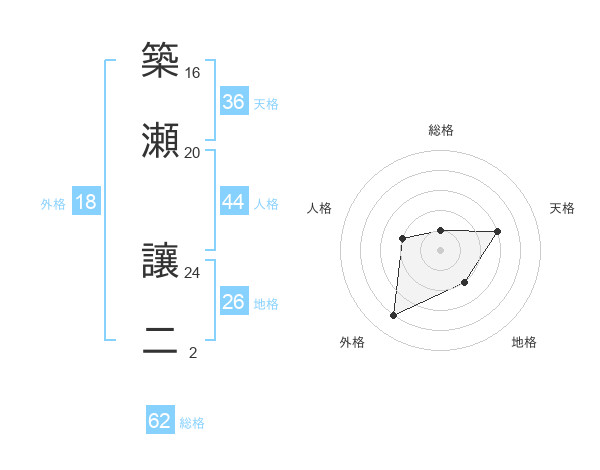 築瀬 讓二さんの総格は62画の1点!