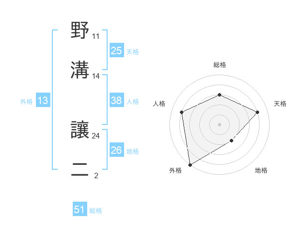 野溝 讓二さんの総格は51画の3点!