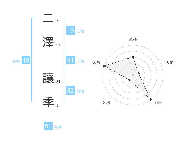 二澤 讓季さんの総格は51画の3点!