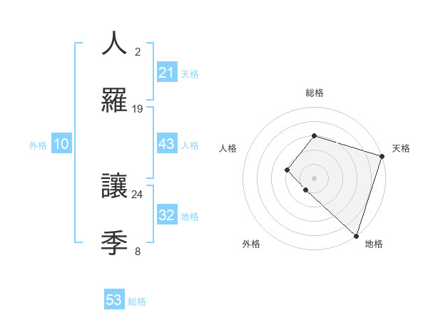 人羅 讓季さんの総格は53画の3点!
