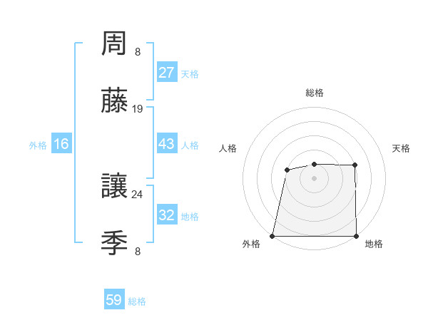 周藤 讓季さんを姓名の画数から五運を鑑定