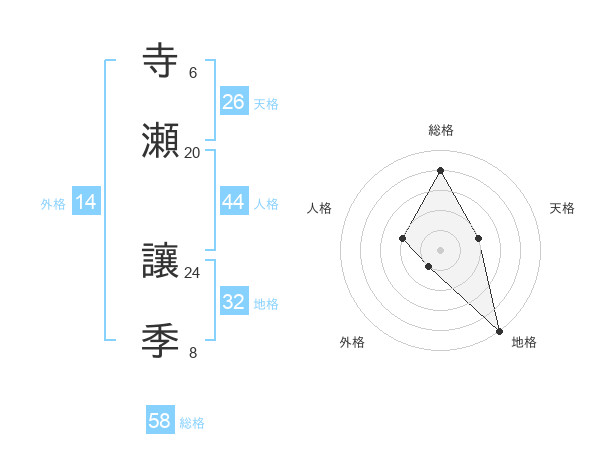 寺瀬 讓季さんの総格は58画の4点!