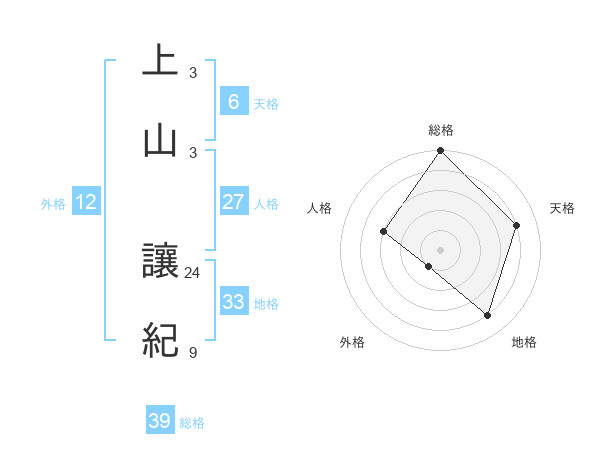上山 讓紀さんを姓名の画数から五運を鑑定