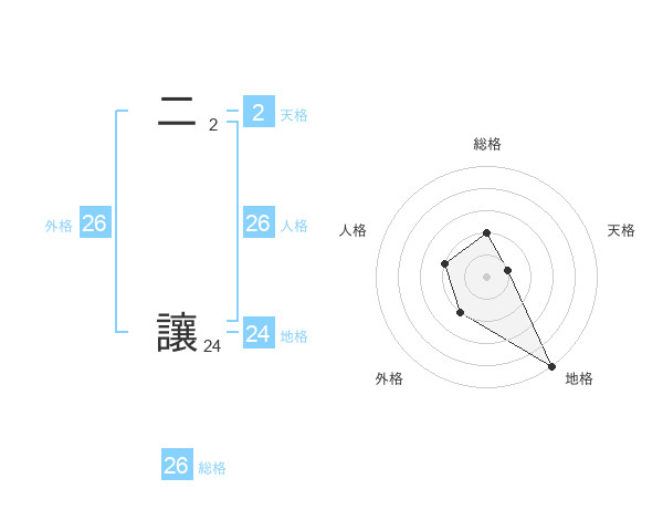 二 讓さんの総格は26画の2点