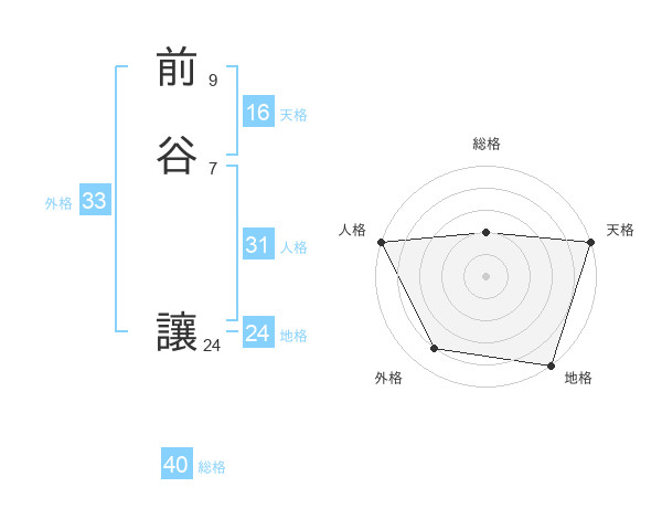 前谷 讓さんの総格は40画の2点!