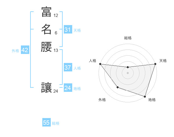 富名腰 讓さんの地格は24画の5点!