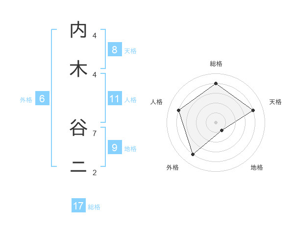 内木 谷ニさんの総格は17画の4点!