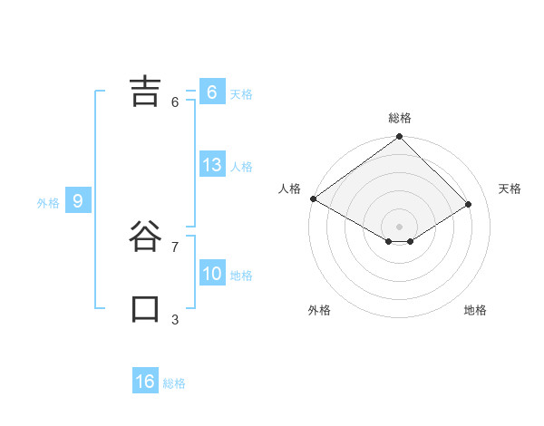 吉 谷口さんの総格は16画の5点!
