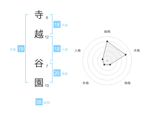 寺越 谷園さんを姓名の画数から五運を鑑定
