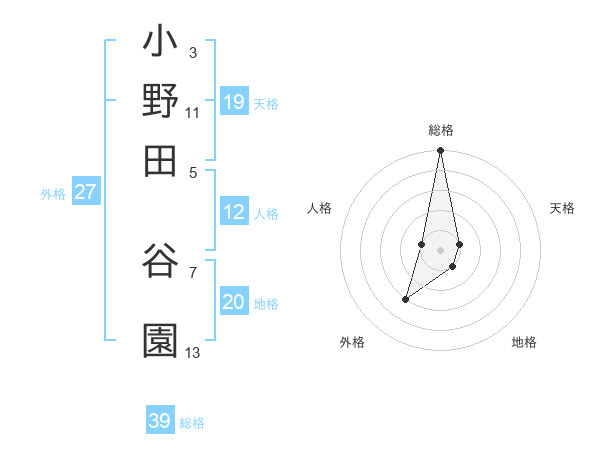 小野田 谷園さんを姓名の画数から五運を鑑定
