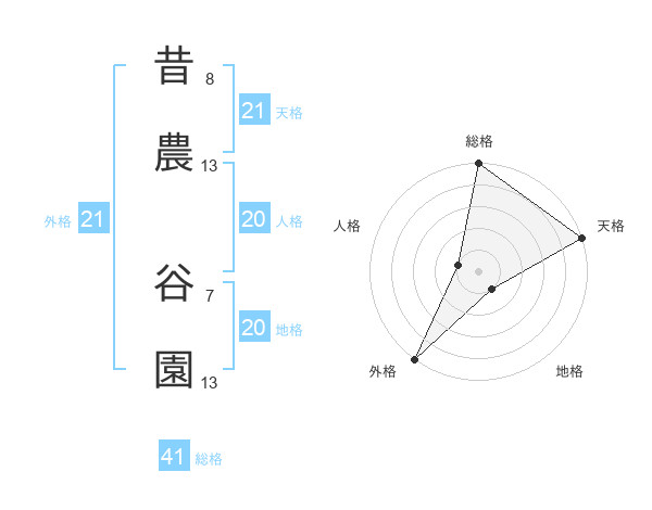 昔農 谷園さんの天格は21画の5点!
