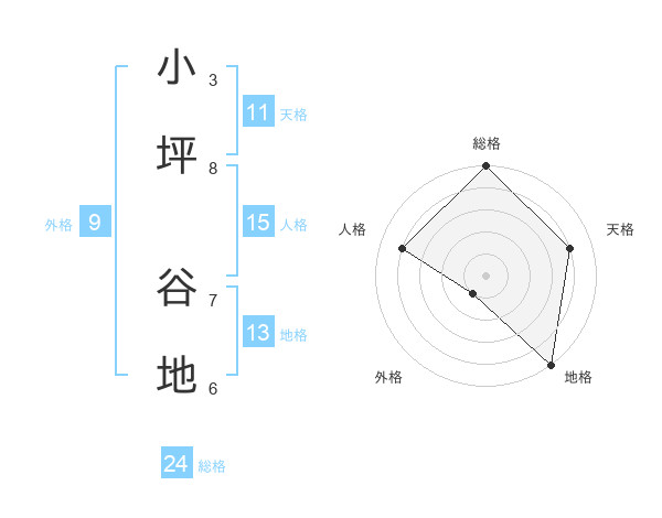 小坪 谷地さんの総格は24画の5点!