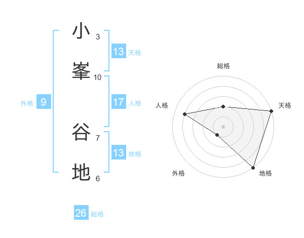 小峯 谷地さんの天格は13画の5点!