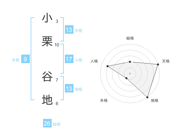 小栗 谷地さんの天格は13画の5点!