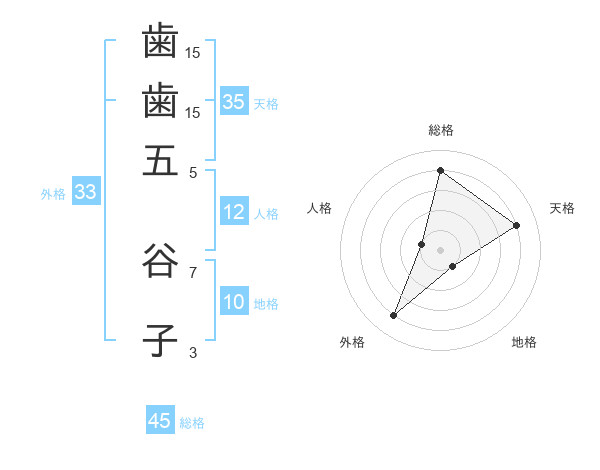 歯歯五 谷子さんを姓名の画数から五運を鑑定