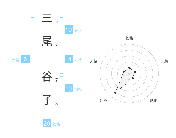三尾 谷子さんを姓名の画数から五運を鑑定