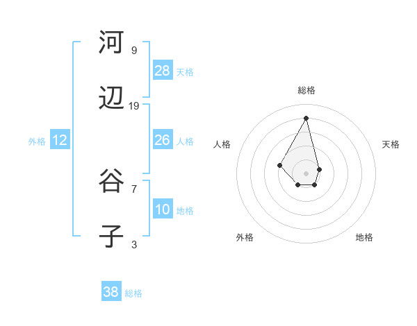 河辺 谷子さんの総格は38画の4点!