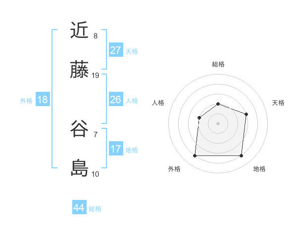 近藤 谷島さんを姓名の画数から五運を鑑定