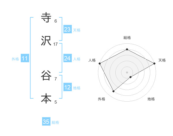 寺沢 谷本さんの総格は35画の4点!