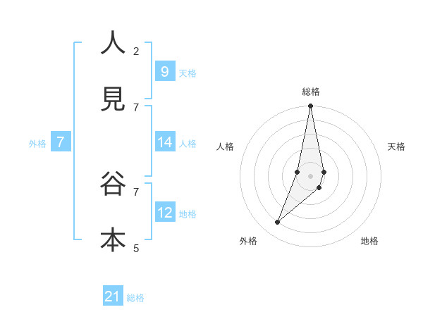 人見 谷本さんの総格は21画の5点!