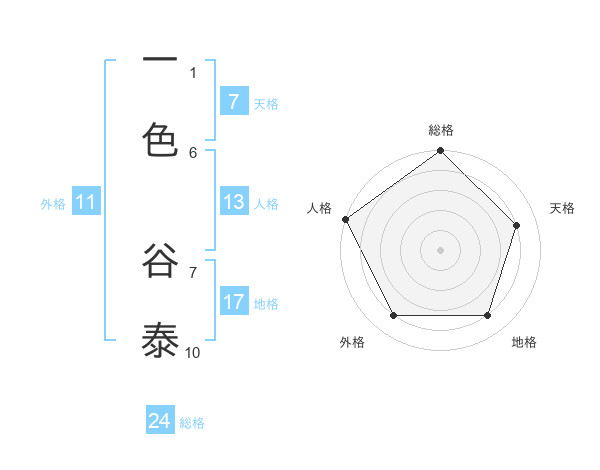 一色 谷泰さんを姓名の画数から五運を鑑定