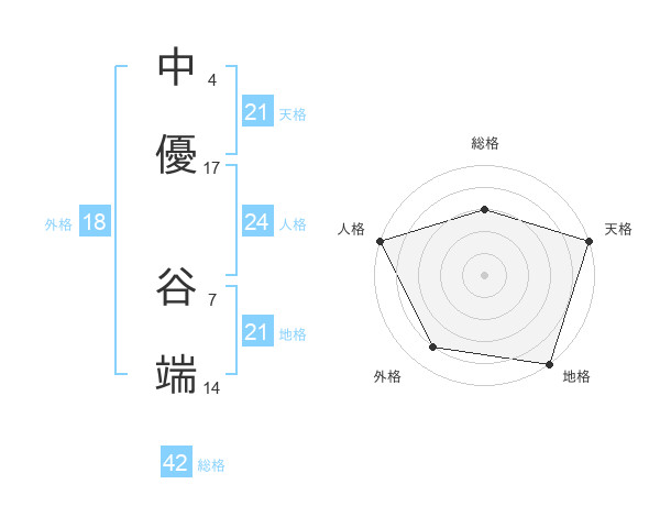 中優 谷端さんの地格は21画の5点!