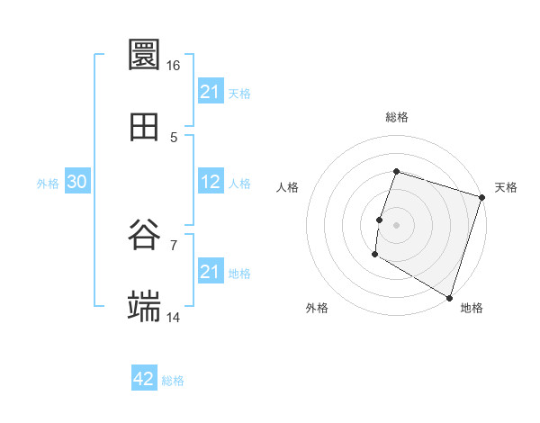 圜田 谷端さんを姓名の画数から五運を鑑定