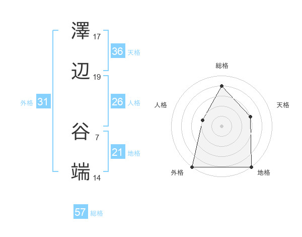 澤辺 谷端さんの総格は57画の4点!