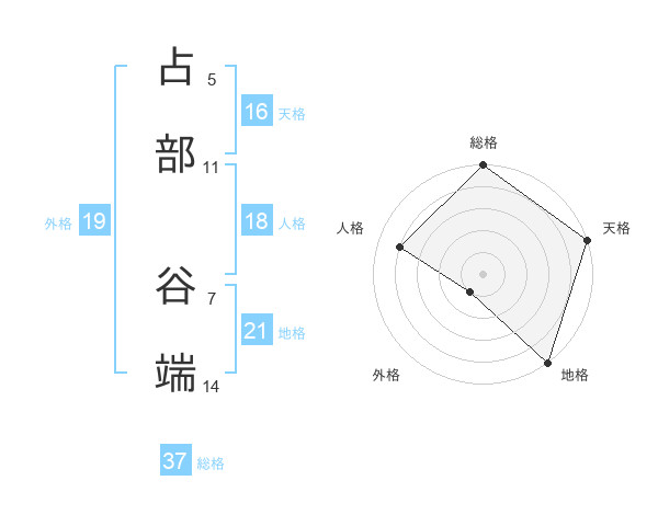 占部 谷端さんの総格は37画の5点!