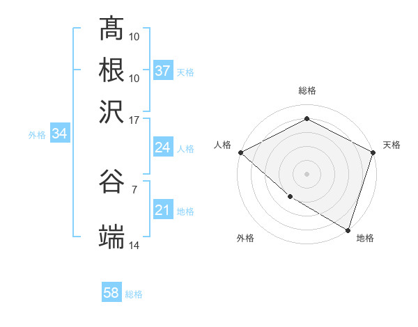 髙根沢 谷端さんの総格は58画の4点!