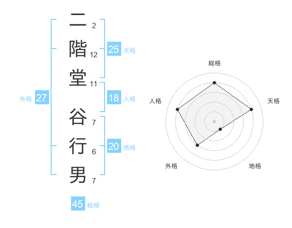 二階堂 谷行男さんの天格は25画の4点!