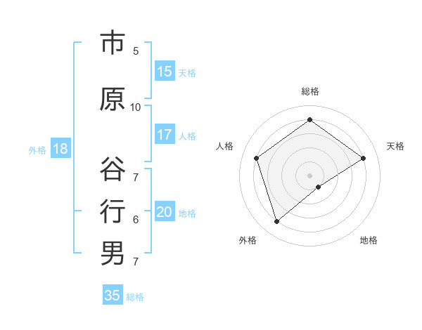 市原 谷行男さんを姓名の画数から五運を鑑定