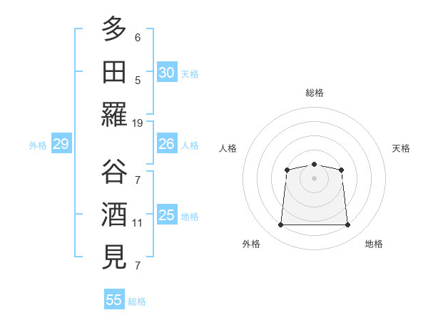 多田羅 谷酒見さんを姓名の画数から五運を鑑定