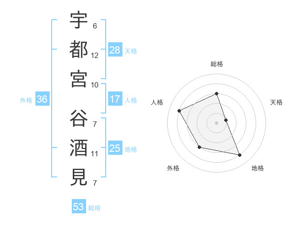 宇都宮 谷酒見さんを姓名の画数から五運を鑑定